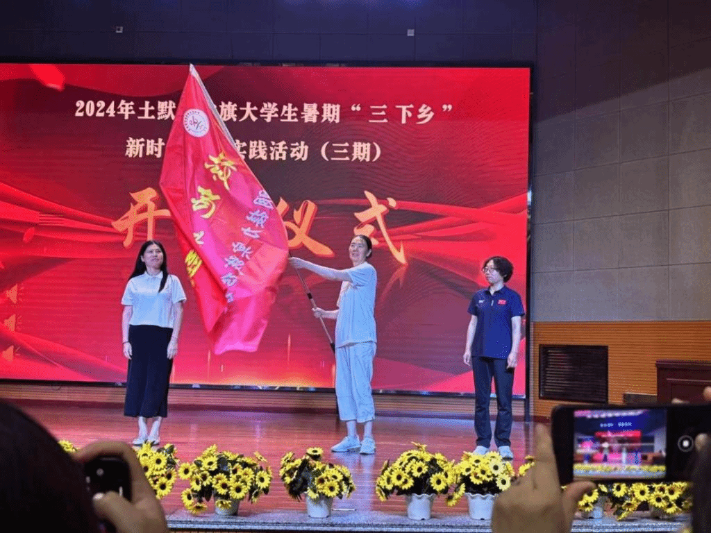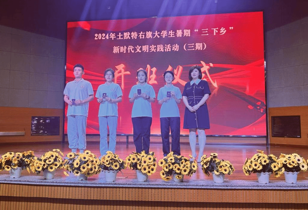 7月23日下午,实践服务团抵达土右旗教育局,与土默特右旗新时代文明实践志愿服务学院携手,举行了2024年土默特右旗“大学生暑期‘三下乡’新时代文明实践活动”开班仪式。