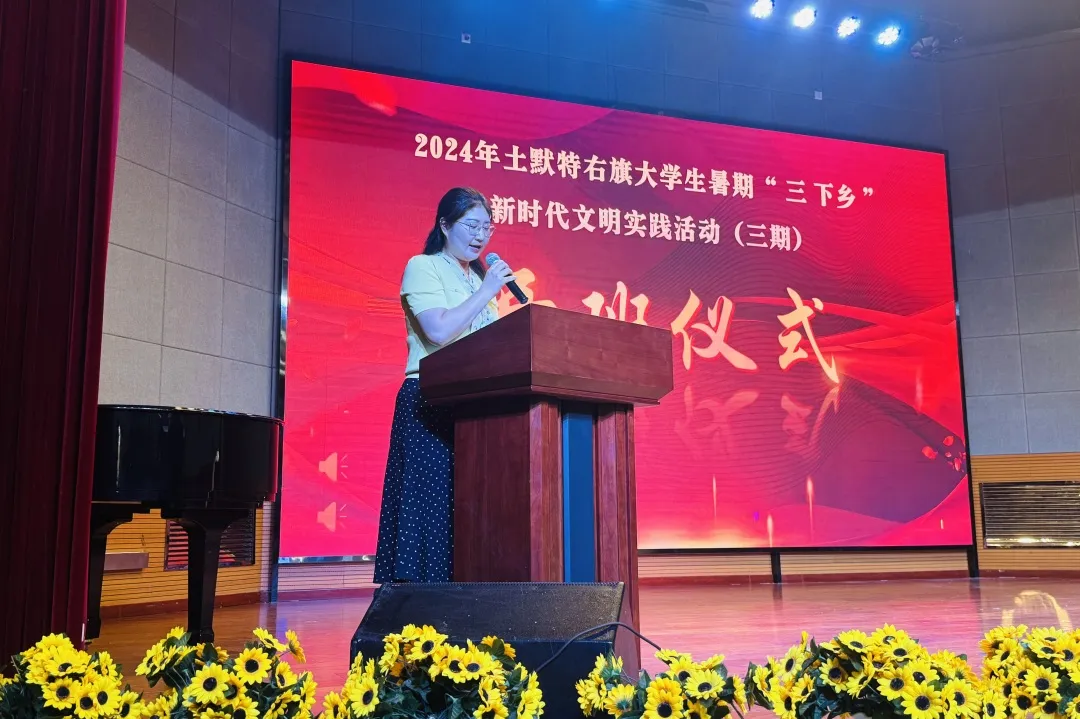 中华女子学院马克思主义学院院长王欢代表实践服务团向土默特右旗领导的支持与帮助表示感谢,并希望同学们在此次活动中厚植家国情、土右情和师生情,真正深入基层,走进乡村,服务人民,用脚步丈量祖国大地,用眼睛发现中国精神,用耳朵倾听人民呼声,用内心感应时代脉搏,不断感悟习近平新时代中国特色社会主义思想的实践伟力。