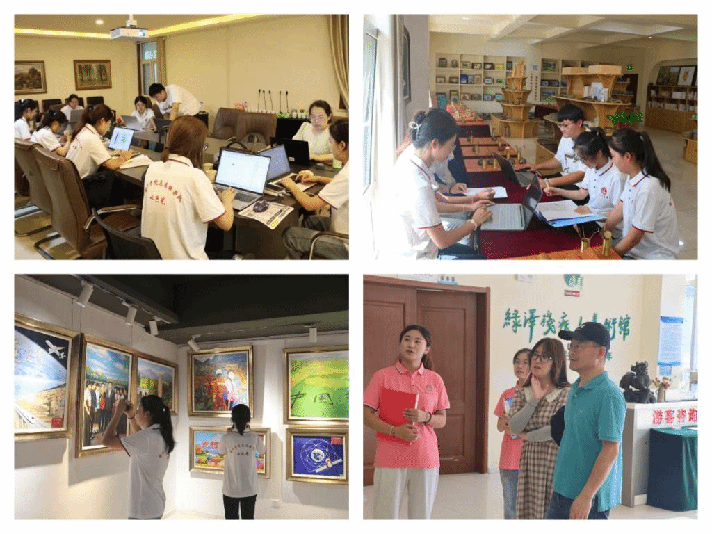 实践团队走入国家级残疾人职业培训基地平阴县绿泽画院。结合画院急需解决的问题和诉求,团队对宣传讲解词进行优化完善,撰写了适用于社会人士、在校学生等不同群体的讲解词,并担任讲解员,用青春声音传播励志故事。团队从优秀传统文化中汲取灵感,为画院设计研学特色课程,共完成流体画、漆扇、拓印、扎染、剪纸、掐丝珐琅画6门课程的高中、初中、小学版的课程教案、活动方案、教学课件的撰写,制作宣传和教学视频8部。