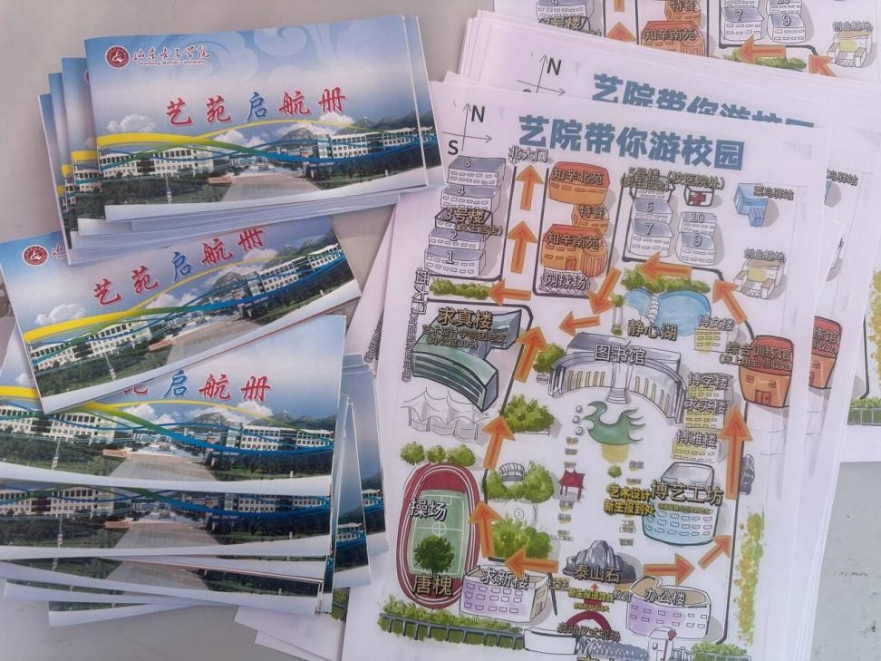 一张“艺苑导航图”。为让新生尽快熟悉校园环境,学院鼓励老生充分利用专业所学,精心手绘了一张“艺苑导航图”。这张地图清晰地标注了学校重要设施位置,是学院为新生准备的一份特殊礼物,不仅是一份实用性工具,更通过新老生的联动促进了学院文化的传承和发展。