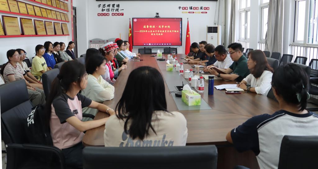 9月3日下午,教育学院举行“滇鲁情深·逐梦女院”首届巾帼班新生入学见面会,共上开学第一堂思政大课。学校党委委员、统战部部长李君,学生工作处处长任晓剑,招生就业处处长吕慎敏,教育学院党委书记崔江宁、副院长(主持工作)王飞,“巾帼班”辅导员、班主任及全体新生共同参加,会议由教育学院党委副书记路敏主持。