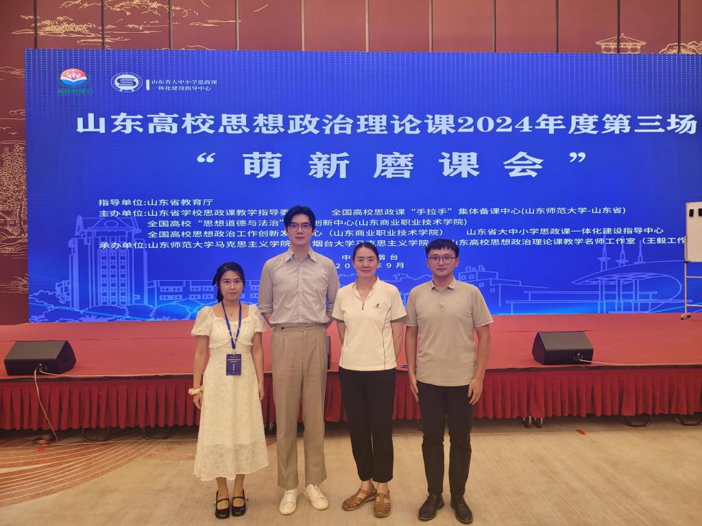 9月8日,山东高校思想政治理论课2024年度第三场“萌新磨课会”在烟台召开。此次活动由山东省教育厅指导,山东师范大学马克思主义学院及烟台大学马克思主义学院共同承办。学校马克思主义学院青年思政课教师焦路尧作为入围选手进行了现场展示,3名思政课教师参加本次活动。