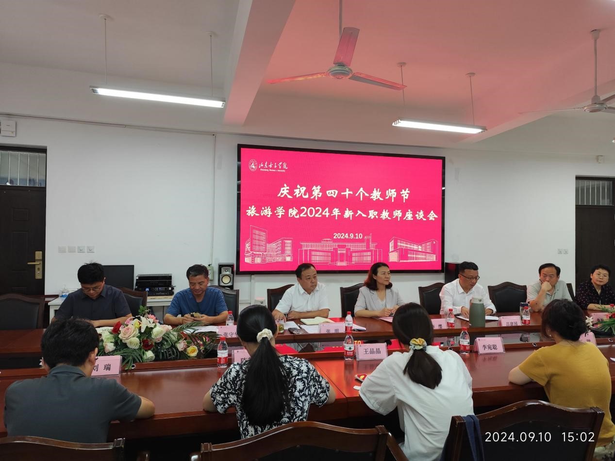 师泽如光、追光前行、躬耕杏坛、薪火相传,为帮助新入职教师快速融入学院环境,明确教师角色定位和职业发展,强化团队交流合作,助力新教师高质高效开展新工作,9月10日,旅游学院举行庆祝教师节暨新进教师座谈交流会,为新入职教师送上教师节暖心祝福,并进行了座谈交流。学校党委委员、副校长李缨,学院领导班子成员、老教师代表、全体新入职教师参会。