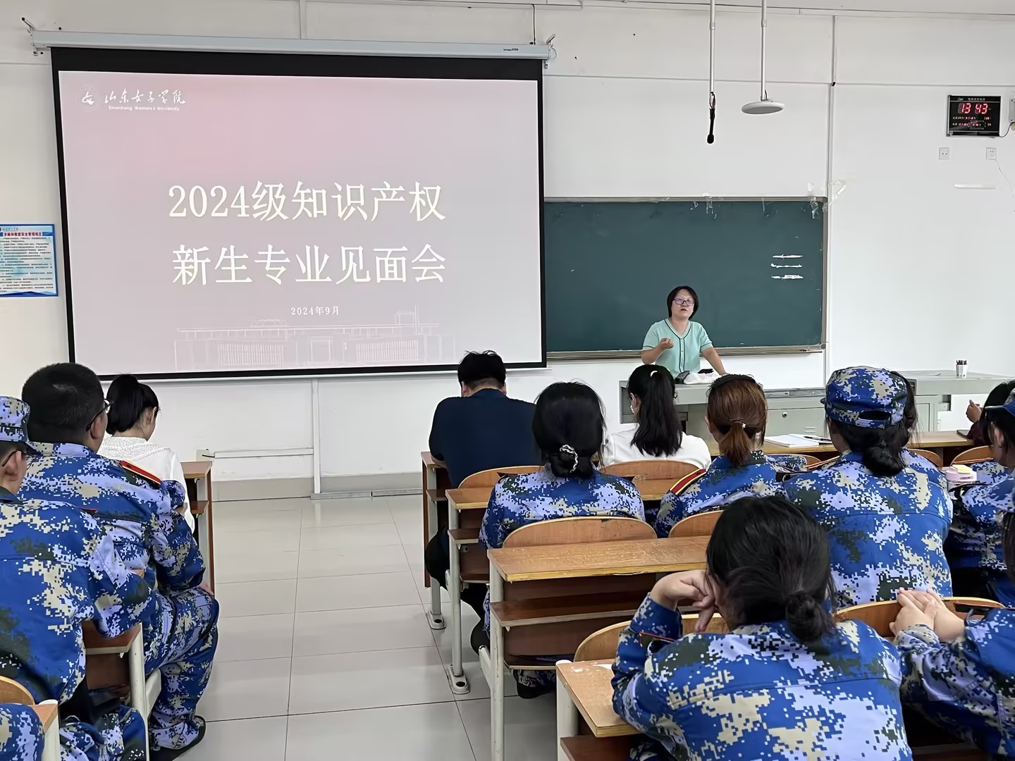 知识产权专业见面会上,王绍霞代表学院向2024级全体新生表示诚挚的祝贺和热烈的欢迎,并介绍了学院知识产权专业办学历史和“双证”人才培养模式,寄语新生在新学期仰望星空、脚踏实地;随后,左清艳总结专业特色即生源质量好、人才培养质量高、考研就业率高,希望同学们做好生涯规划,做到日有所进、月有所长、学有所成。