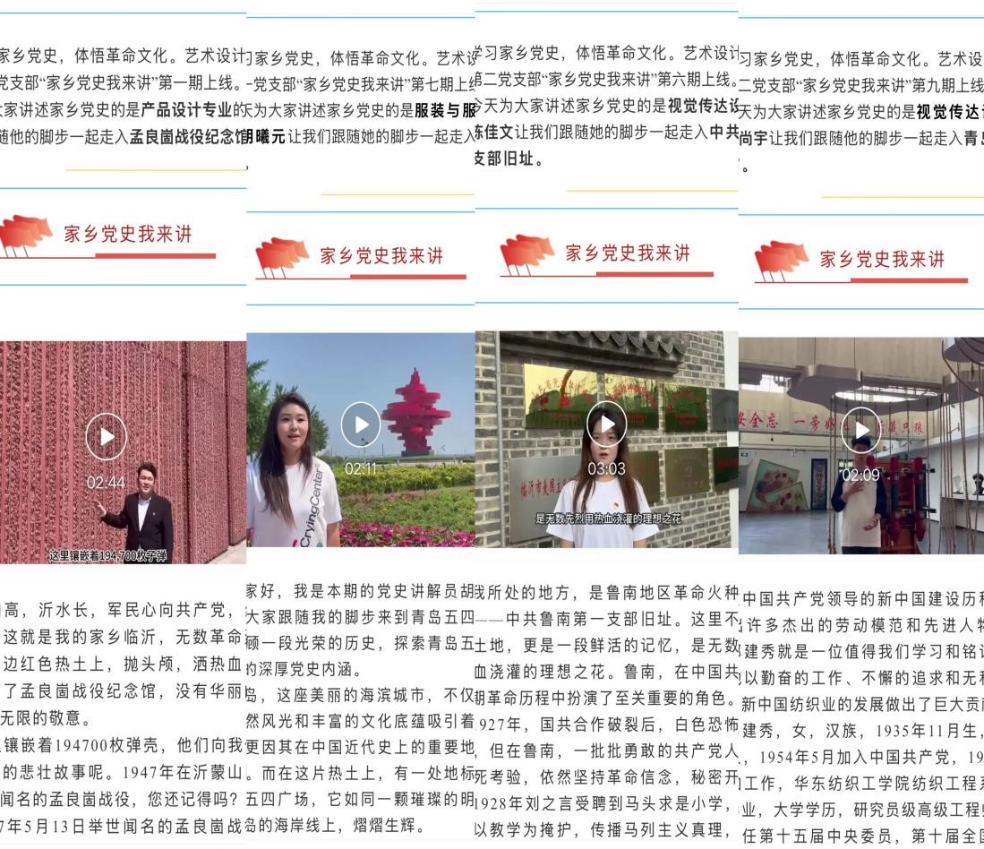 活动一经发布,学生们积极响应,以独特的视角和方式,讲述家乡党史的动人篇章。活动过程中,通过学院微信公众平台,推出了“红色记忆·家乡党史”系列视频专栏,共推送了21期精彩内容。这些视频不仅记录了学生们探访的点点滴滴,更融入了他们对红色文化的深刻理解和感悟。为表彰优秀,鼓励创新,经过广泛征集意见和公开投票,最终评选出了10份优秀作品,并在学院内进行了表彰和展示。