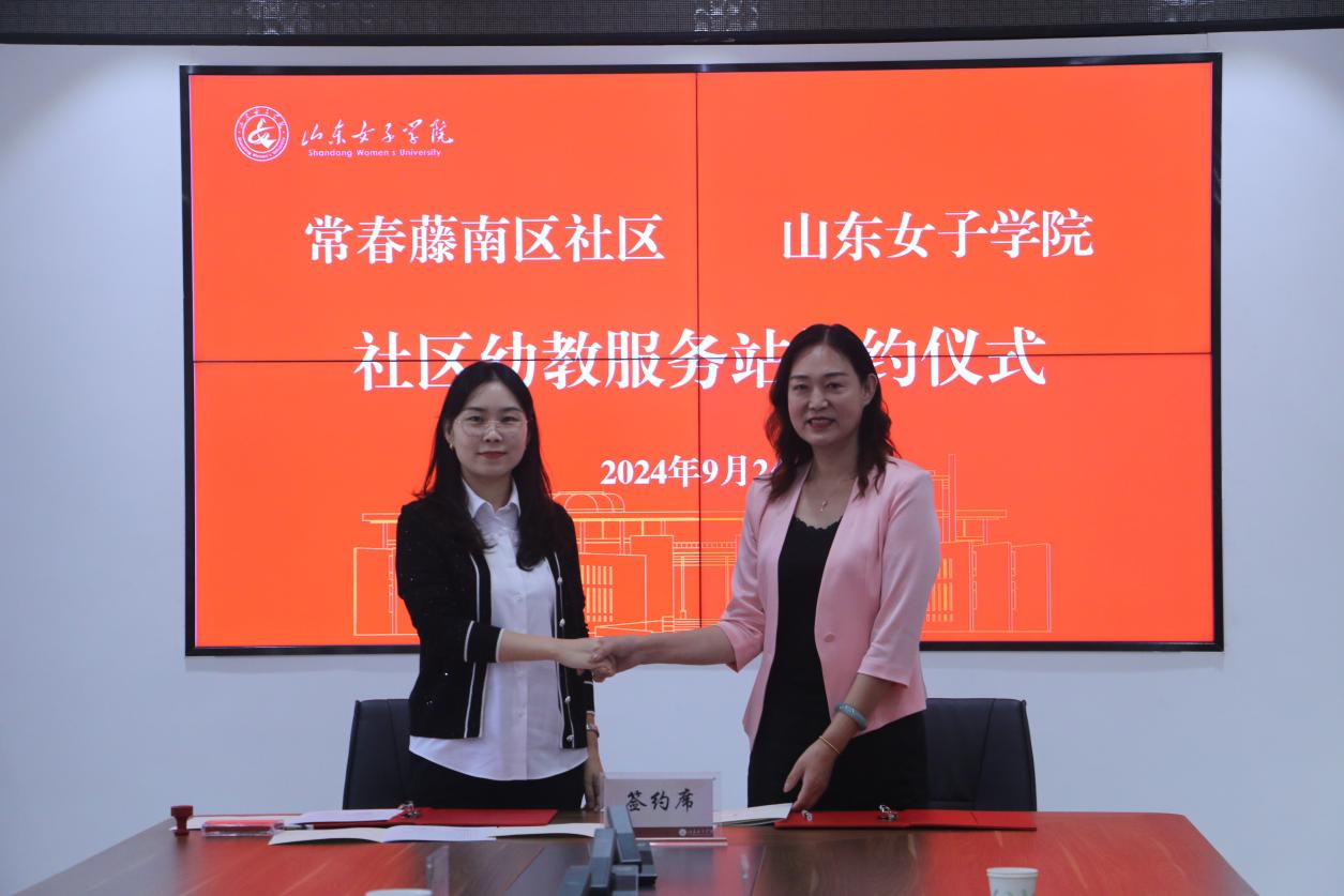 会上,于子云与李科琳分别代表校地双方签订了幼教服务站合作协议。根据协议,学校将与常春藤南区社区共建幼教服务站,面向社区居民提供“方便可及、普惠优质”的幼教服务,开展幼儿托育、亲子教育、幼儿启智阅读等业务。