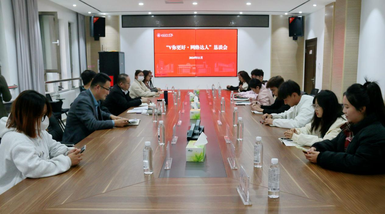 11月14日下午,学校“V你更好·网络达人”恳谈会在办公楼第四会议室举行。来自各学院的14位校园网络达人带来精彩分享,学校党委宣传部、创新创业学院负责同志出席会议并讲话。