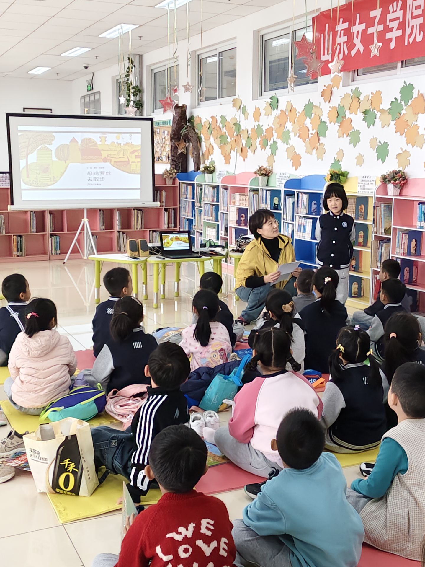 11月16日,学校图书馆儿童绘本馆迎来了一场别开生面的“行走的课堂”活动。本次活动邀请到济南幼儿师范高等专科学校学前教育学院王文副教授,以及该校2022级学前教育专业的优秀学生孙照欣、雷惠文和山东师范大学附属小学大学城校区一年级8班的47名小学生。