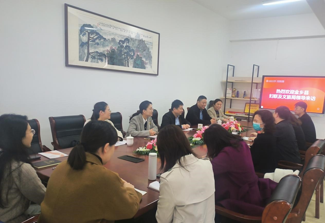 11月15日,金乡县文化和旅游局党组书记王剑涛、县妇联主席刘珊珊一行莅临艺术设计学院,就基于金乡县文旅与各类产业特点的设计开发项目进行深入对接。艺术设计学院党委书记董玉新、副院长(主持工作)赵月及相关专业负责人、骨干教师热情接待了来访团队,并进行了座谈交流。