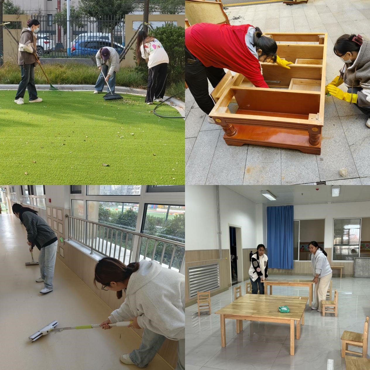 在负责老师的带领下,同学们按照卫生区分工,对幼儿园的户外、各功能教室、走廊等区域进行了彻底的卫生清扫,将班级活动区域内物品摆放整齐,做到全覆盖、无死角、零遗漏,为孩子们提供一个更加干净、整洁的学习生活环境,受到了幼儿园师生的好评。劳动实践结束后,同学们与孩子们进行了互动游戏。