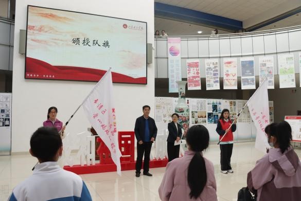 韩玉晶宣读《“清姐暖童心 向阳伴成长”爱心妈妈+童伴姐姐结对留守及困境儿童关爱行动实施方案》,为留守及困境儿童关爱的行动指引了方向。爱心妈妈和童伴姐姐与困境儿童结对,并发放微心愿礼物,拉近了志愿者与困境儿童的距离。杨洋、韩玉晶为学校向日葵童伴姐姐志愿服务队和长清区“紫薇花开·清姐”爱心妈妈志愿服务队颁授队旗,强调了对志愿服务队的新要求和新期盼。“爱心妈妈”代表和“童伴姐姐”代表表示,将会以认真负责的态度对待每一次活动,持续帮助留守困境儿童群体,为儿童树立良好的榜样作用。李丽华对志愿服务队进行勉励,她强调应重视留守困境儿童处境,持续深化对其的关爱与帮扶,同时表达了对更多学生投入到志愿服务中的期盼。