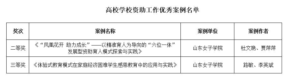 本次评选,山东省学生资助学会共收到高校学生资助工作案例147个。经专家初审、复审,共评选出高校优秀案例103个。其中,一等奖案例21个,二等奖案例32个,三等奖案例50个。本次学校在评选中获得佳绩,得益于近年来学校坚持“济困助学、爱心育人”的工作理念,依托“凤凰花开”资助育人品牌,结合受助学生实际需求,构建物质帮扶、道德浸润、能力拓展、精神激励、启智润心、求职发展有效融合的“六位一体”发展型资助育人模式,助力学生全面成长。