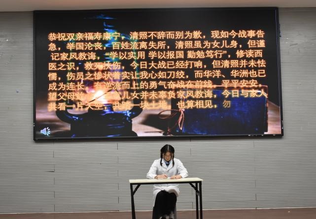 社会发展学院与健康养老学院以一封饱含深情的《家书》为线索,将大家带入了一个关于家国情怀的动人故事。大家仿佛看到了孟清照这位巾帼英雄,在孟家家风的熏陶下,毅然决然地踏上了从军报国的征途。她的英勇与无畏,忠诚与担当,无不深刻地诠释了“天下之本在国,国之本在家”的崇高理念。