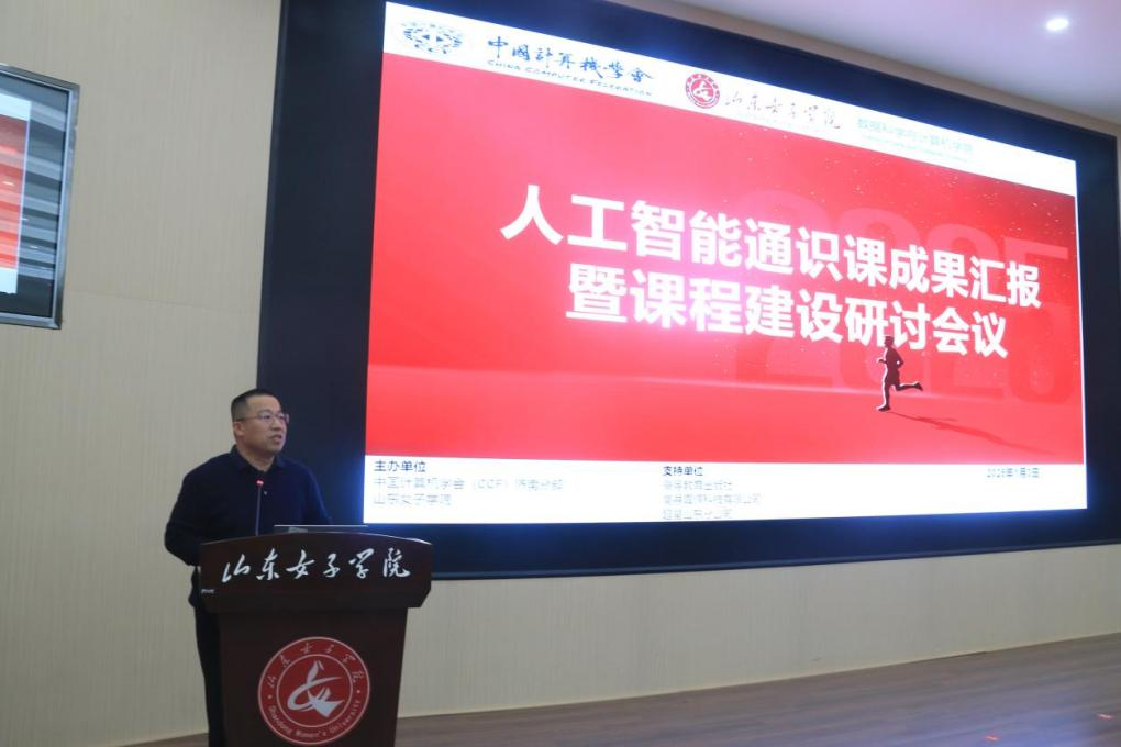 1月3日,数据科学与计算机学院在求真楼报告厅举办人工智能通识课成果汇报暨课程建设研讨会议。会议旨在搭建一个开放、共享的平台,促进人工智能通识课程建设经验的交流与分享,汇聚各方智慧,共谋地方高校人工智能通识教育的发展。会议特别邀请了山东大学计算中心主任、教育部高等学校大学计算机课程教学指导委员会委员、信息技术新工科产学研联盟计算机通识教育工委主任郝兴伟,山东交通学院信息科学与电气工程/人工智能学院院长张广渊,枣庄学院信息科学与工程学院院长杨振等省内高校专家领导,以及来自高等教育出版社、高寻真源科技有限公司、超星山东分公司的相关专家参会。副校长刘恩允到会致辞。学院主要负责人主持会议。
