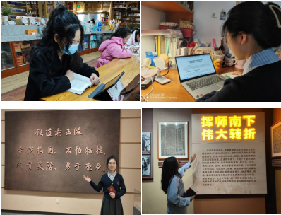 1月15日-18日,蓝翼宣讲团成员利用社交媒体进行线上互动学习,分享学习资料,搭建交流平台。宣讲团成员汪思岐、张雅宁、王梦月同学分享到枣庄铁道游击队纪念馆、泰安冯玉祥纪念馆、菏泽鲁西南战役指挥部旧址参观经历,深刻体悟革命先辈坚定的理想信念与无畏牺牲精神。