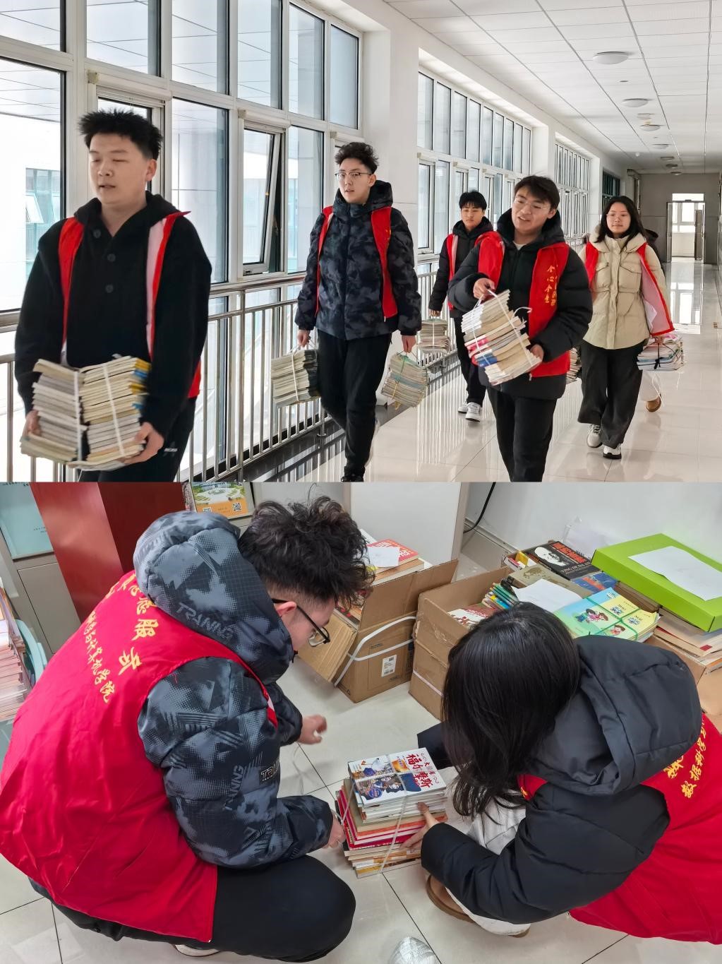 为丰富学校图书资源,助力硕士学位授予单位 “攻坚战”,学院青年积极响应捐书号召,勇挑重担,自觉成立捐书工作服务小组,助力捐书工作顺利开展。各班级踊跃参与图书捐赠活动,同学们精心挑选书籍,为丰富学校图书馆资源添砖加瓦。捐书工作服务小组的同学们不辞辛劳,全力投入图书打包、统计、搬运等工作。他们认真核对每一本书籍信息,仔细打包,确保书籍安全运输,为学校申硕工作贡献青春力量,激发 “在知爱建” 的奋斗热情。
