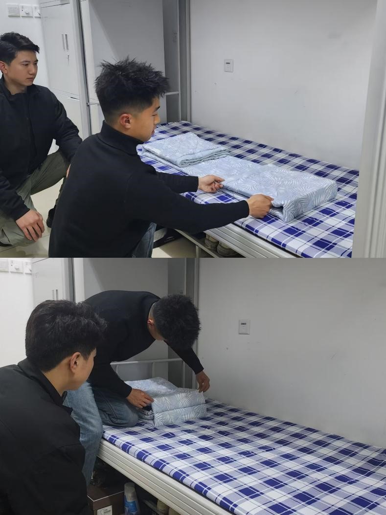 为迎接新学期,深入了解学生学习生活情况,确保开学各项工作有序开展,学院组织党员、退役军人组成 “寝” 听心声服务队,深入宿舍走访关怀学院返校学生。学生党员积极与同学们交流,分享学习经验与生活心得,鼓励大家勇敢面对学习和生活中的挑战。退役军人走进寝室,现场示范叠被子、整理衣物、摆放物品等实用技巧,提升同学们内务整理水平,培养良好生活习惯。