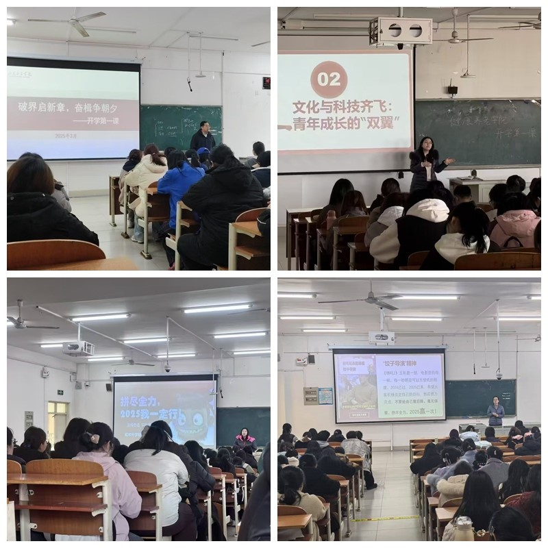 为全面贯彻党的教育方针,落实立德树人根本任务,深入学习党的二十大和二十届二中、三中全会精神,深化学生思想政治教育,引导学生坚定成才梦想,坚定报国信念,帮助学生全身心投入新学期学习生活,健康养老学院于3月1日-3月9日成功举办了“破界启新章,奋楫争朝夕”2025年春季学期“开学第一课”活动。