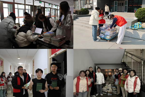 精准服务以爱为链,全程守护书香流转。云端登记汇聚爱心,寒假期间发起线上问卷精准锁定408名捐赠者,提前协调物流与仓储空间,让温情在寒冬中蓄力待发。雪中驿站守护爱心,3月2日返校日恰逢大雪,学院在3号、8号南楼及北楼、9号、11号公寓大厅设置图书捐赠点,实现“冒雪进楼—卸下行李—即刻捐赠—轻装返校”的无缝衔接。风雪中接收书籍6000余册,单日参与人数突破800人。志愿服务传递爱心,每周四、周日下午学生会组织志愿者,对捐赠量较多的寝室开展“敲门到户”精准服务,上门提供搬运服务,达到全院寝室全覆盖。长效港湾温暖爱心,将学院1号公寓党团活动室打造为“爱心基地”,每日午间、傍晚开放图书捐赠服务,不仅作为书籍汇聚的中转站,更是传递温暖的精神港湾。
