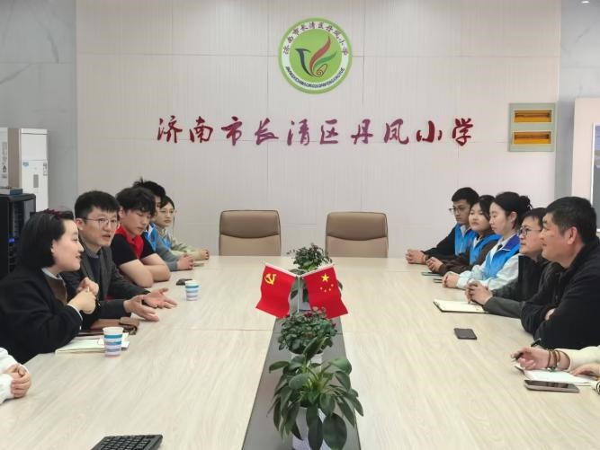 在丹凤小学,志愿服务队与丹凤小学校长孙延明和社团指导老师们进行了深入的座谈交流。双方围绕课程设置、学生需求及合作细节深入交流,明确了本学期每周四下午开设的8门社团小课程,涵盖手工、音乐、绘画、篮球、足球、舞蹈、课本剧和杯子律动等丰富内容。在座谈交流中,孙延明对志愿项目给予高度评价,表示双方的合作互动将为乡村儿童提供接触艺术、体育与创新实践的机会,是素质教育的生动延伸。杨晓斐对志愿服务队的前期工作给予充分肯定,希望志愿服务队通过“社团小课堂”激发“童心大梦想”,实现高等学校教育与小学教育资源的双向赋能,勉励服务队队员在志愿服务和奉献社会中锤炼责任和担当。