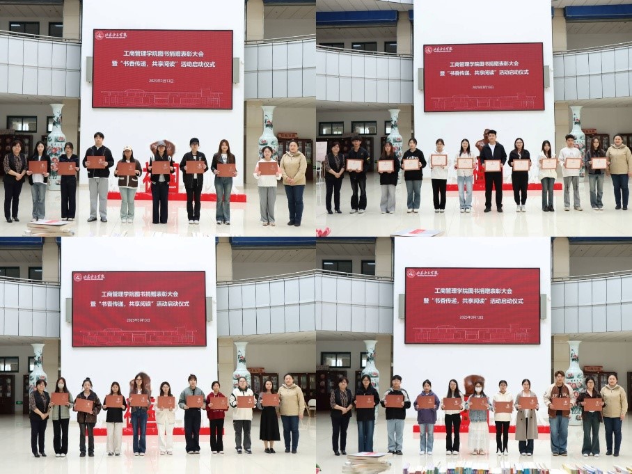 书香满园,智韵传新。3月13日下午,工商管理学院在图书馆举行图书捐赠表彰大会暨“书香传递·共享阅读”活动启动仪式。图书馆馆长成曙霞、学院党委书记耿华、党委副书记杨晓斐及学院师生代表参加活动。