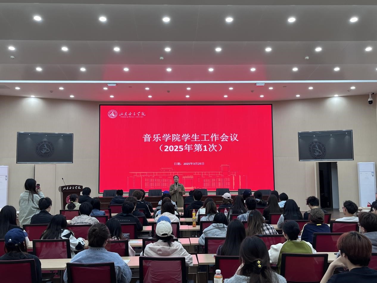 3月25日,音乐学院在求真楼报告厅组织召开2025年春季学期第一次学生工作会议,专题部署校园安全工作。学院党委副书记吕梅主持会议,全体辅导员及各班级班长、团支书、卫生委员、宿舍长参加会议。