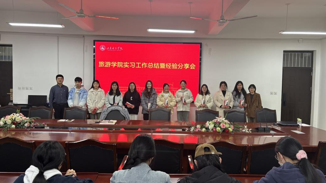 近日,为充分发挥优秀实习生榜样引领作用,助力在校大学生明晰职业方向、促进职业成长,旅游学院实习工作总结暨经验分享会在求真楼219会议室成功举办。会议以“喜撷硕果载誉而归,薪火相传共话成长”为主题,回顾学生实习成果,围绕实习收获与就业能力提升展开交流,并表彰优秀实习生。旅游学院副院长王晓伟、教研室主任、实习指导教师、优秀实习生及2023级学生代表参加会议。