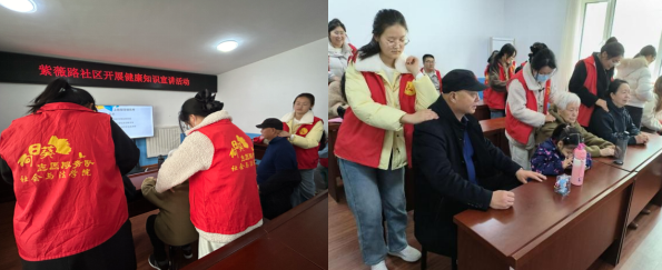 为激励学子为养老事业贡献青春力量,学院开展“火德润心,传承风尚”主题团课,学习雷锋精神的时代内涵,结合养老事业中的奉献案例,引导学生将“助老爱岗、无私奉献”的精神内化于心;“向阳为老”志愿服务队走进园博园社区,为老人提供血压测量、健康咨询等服务,并通过发放宣传手册、布置公益展板等宣传健康知识,为社区传递健康温暖。