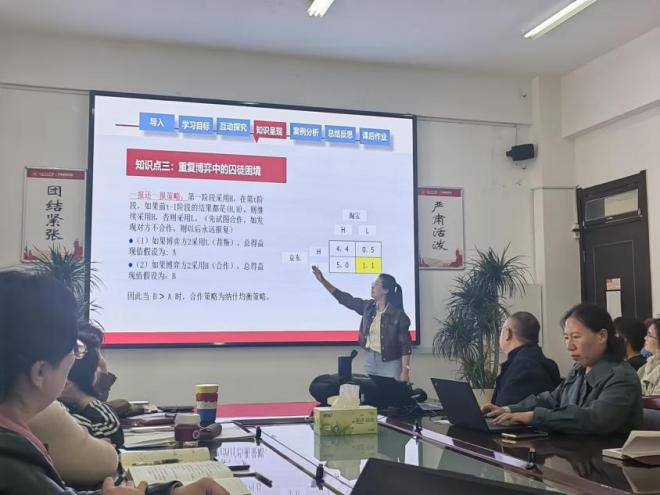 随后,工商管理学院青年骨干教师, 2024年山东省青教赛三等奖获奖者张倩倩为大家带来了一场精彩的课程试讲。她凭借扎实的专业知识、生动的教学语言以及灵活多样的教学方法,充分展示了其优秀的教学能力,为在场教师树立了良好的榜样。