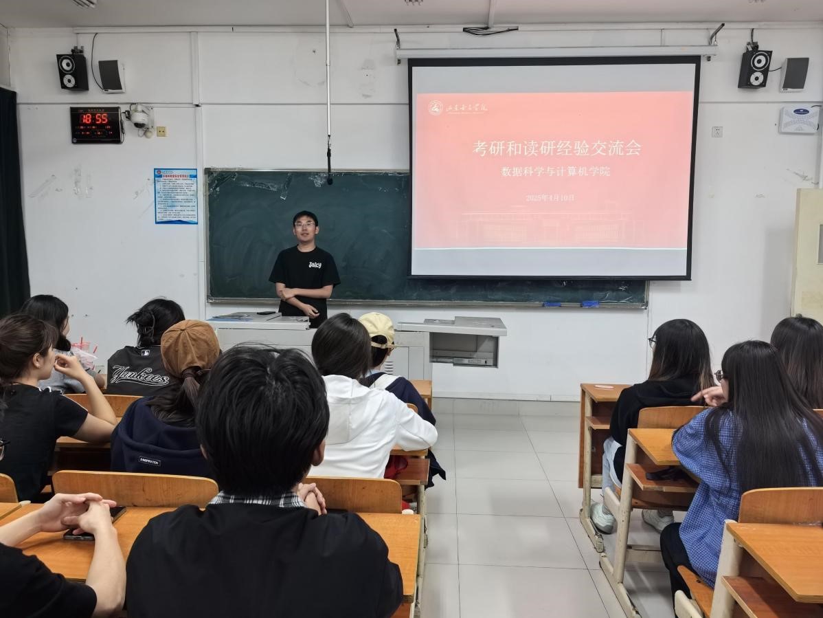 4月10日,由数据科学与计算机学院团委、软件工程教研室、智能软件工程协会联合主办"考研与读研经验交流会"。本次交流会作为系列活动的首场,主要面向2023级计算机科学与技术创新实验班学生,吸引了多名有志于考研深造的同学参加。