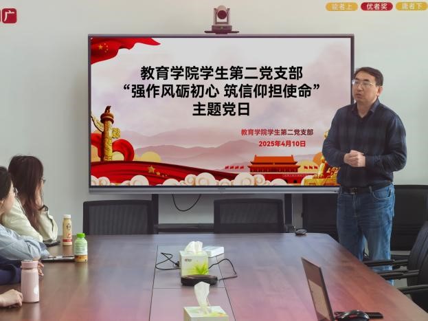 为推动深入贯彻中央八项规定精神学习教育有序开展,持续加强学生党员作风建设,提升责任担当意识。4月10日,教育学院学生党支部开展“强作风砺初心,筑信仰担使命”系列主题党日。通过 “线上 + 线下”“校外 + 校内”“承诺 + 践诺”多维联动模式,推动理论学习与实践转化深度融合。