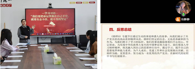 各学生党支部组织党员精读习近平总书记关于作风建设的重要论述,通过邀请学院党委书记吕慎敏讲党课、专题学习“我们要把命运掌握在自己手中,就要有志不改、道不变的坚定”微党课、观看《榜样9》专题节目等,引导党员从思想深处筑牢作风建设的根基,对照中央八项规定精神,时刻自省自律。吕慎敏寄语青年党员,要以身作则进一步锤炼党性修养,践行服务宗旨,对标时代使命,在求真务实、创新实干中做政治过硬的表率、青春奋斗的标杆。