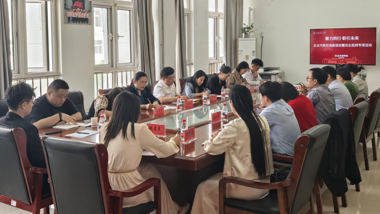为深化校企合作、优化人才培养模式实践路径,助力毕业生高质量就业,4月17日上午,社会发展学院举办“聚力同行·职引未来”——企业代表交流座谈会暨访企拓岗专项活动。学院领导、教研室主任、多家知名企业的代表以及毕业生代表共聚一堂,共话产学研融合新路径,共谋协同育人新篇章。