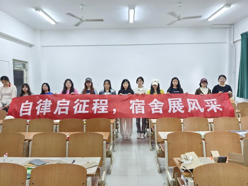宿舍公约是大学生共建和谐居住环境的重要工具。通过集体协商明确作息、卫生、用电等规则,它既能规范行为、减少摩擦,又能增强成员责任感与集体意识。这种协商模式,还帮助同学们在自我管理中实现从“被动约束”到“主动自觉”的成长过渡。为深化文明宿舍建设内涵,4月24日下午,旅游学院学生自律会举办"宿韵凝章·约启新程"宿舍公约手工创作大赛, 8支参赛团队齐聚一堂,用巧思妙想诠释宿舍公约新表达。