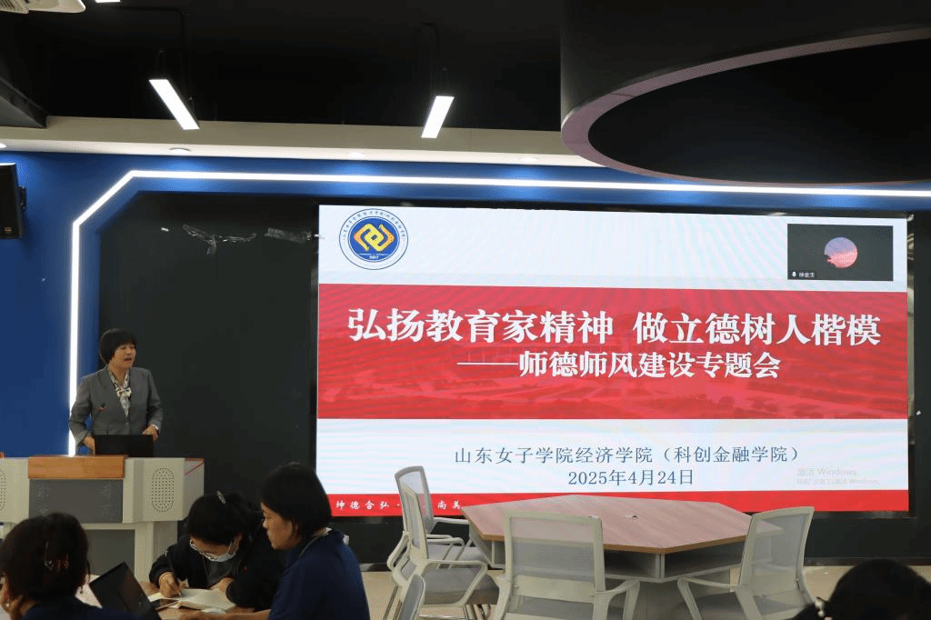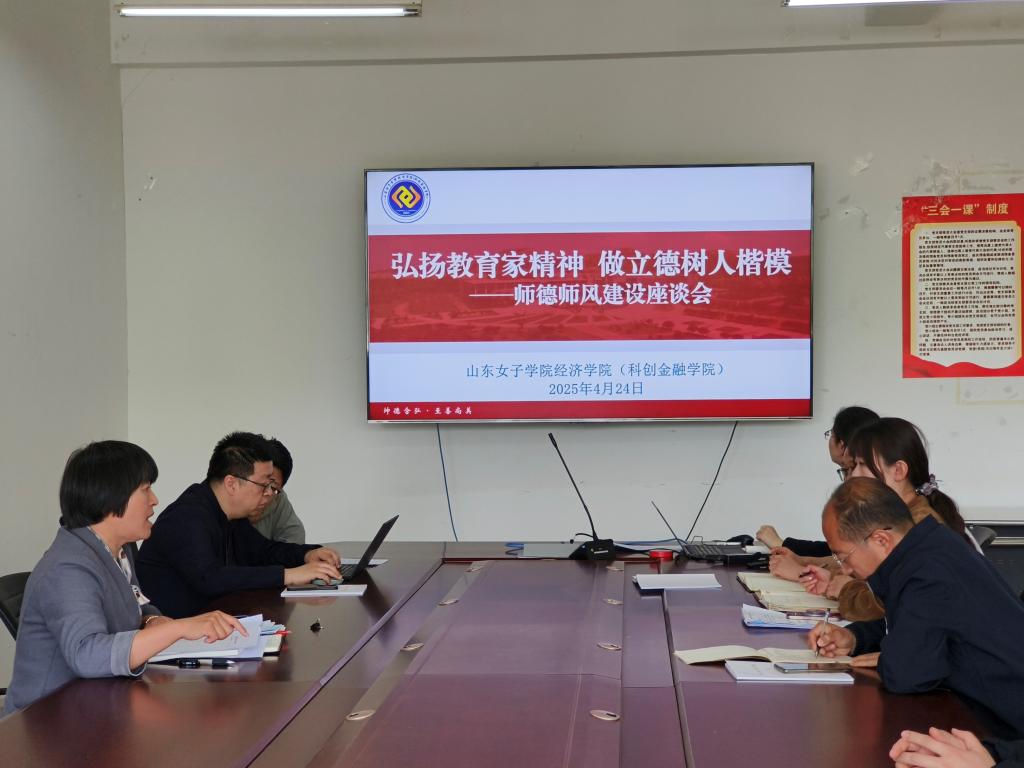 为进一步贯彻落实中共中央、国务院下发的系列文件精神,落细落实学校党委关于师德师风建设的总要求,深入弘扬新时代教育家精神。4月24日,经济学院(科创金融学院)党委开展“弘扬教育家精神,做立德树人楷模”师德师风建设主题教育。此次会议由学院党委书记齐振花主持,经济学院全体教职工参加。