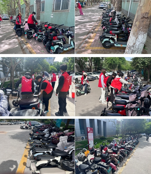 活动伊始,同学们分组领取清洁工具,在小组长的带领下有序前往责任区域。春末夏初,琴房外落叶堆积,志愿者们手持扫帚、垃圾袋,细致清扫路面落叶,清理后将垃圾集中转运;博雅楼外,同学们针对校园内电动车停放杂乱的问题,协力规整车辆,腾出通行空间。尽管太阳高照,但志愿者们热情不减,分工协作高效完成各项任务,琴房、教学楼及周边环境焕然一新。