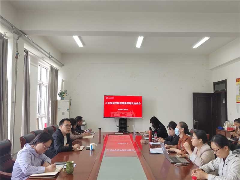 4月24日,社会发展学院召开智慧课程建设启动会。启动会由副院长王绍霞主持,院长孙旭友、副院长苏海及全体教师参加。