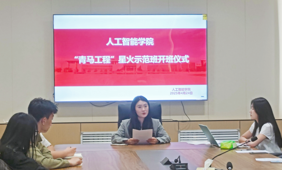 4月25日,人工智能学院举行“青马工程”星火示范班开班仪式。活动由学院辅导员韩新虹主持,学校“青马工程”培训班学员以及各班团支书共同参加。