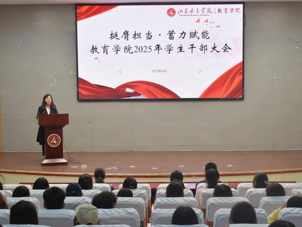 为进一步加强教育学院学生干部队伍建设,确保学生干部准确理解学院最新的教育理念、管理要求,更好地成为学院与学生之间的桥梁,4月25日,教育学院于图书馆一楼报告厅举办2025年学生干部大会。本次会议以“挺膺担当 蓄力赋能”为主题,聚焦学生干部工作日常,同时注重收集学生组织的真实诉求,及时给予反馈,实现双向沟通。学院党委副书记路敏、全体辅导员及学生干部代表参与本次会议。