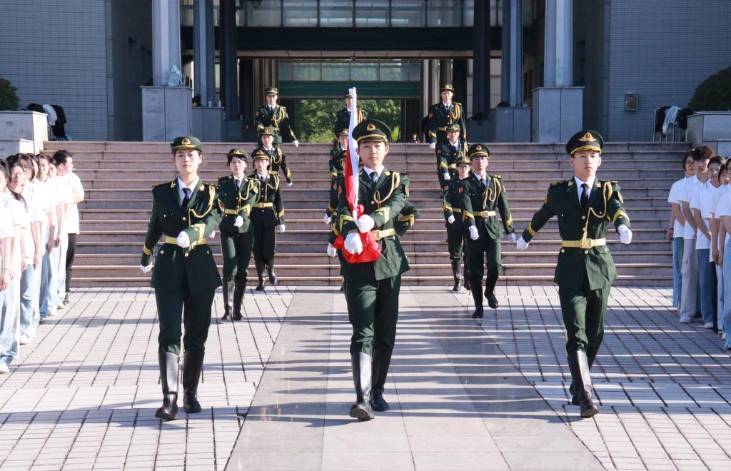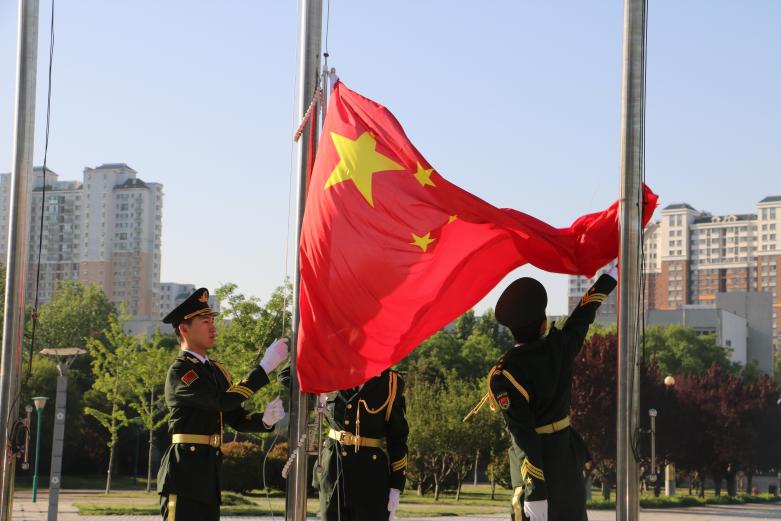 仪式伊始,学校英姿军事协会同学护送国旗入场,全体人员肃立,在嘹亮的国歌声中,注视五星红旗冉冉升起。团委书记孙利华向团员青年们致以真挚的节日问候,通过“以奋斗为骨,锤炼过硬本领;以担当为翼,投身时代征程;以品德为基,涵养高尚人格”三个方面,向广大青年提出希望。他表示,新时代青年要以爱国为信仰,以奋斗为底色,以担当为动力,以品德为基石,在青春的赛道上奋力奔跑。