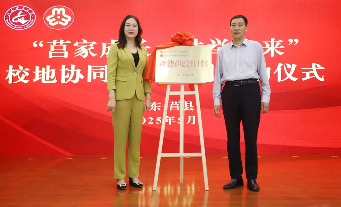 仪式上,学校合作发展处处长于子云与莒县县领导共同为山东女子学院“家庭家教家风博士工作站(莒县)”揭牌。该工作站由学校专家团队牵头,将开展家庭教育理论研究、指导师培训及实践创新等工作,为莒县家庭建设提供常态化智力支撑。