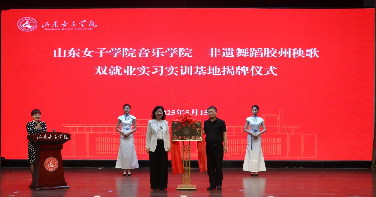 会上,刘恩允与胶州市文化馆馆长范立恩共同为“校地双就业实习实训基地”揭牌,并为7名胶州秧歌传承人颁发特聘证书。
