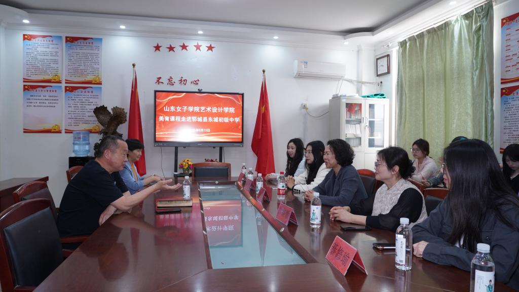 艺术设计学院与郓城东城中学举行专题座谈会,赵月强调了美育在青少年成长中的重要性,指出“美育不仅是艺术技能的培养,更是审美素养和创新思维的塑造”,结合艺术设计学院特色,分享了如何通过科技赋能传统艺术教育。东城中学校长李占村对此次活动表示热烈欢迎,指出乡村教育需要更多优质资源的注入,期待通过校际联动,让科技与美育成为学生全面发展的双翼。