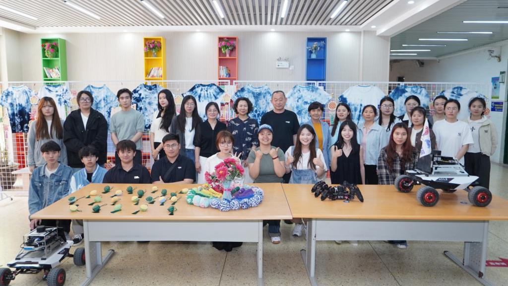 随后的美育实践课程中,艺术设计学院师生分组带领中学生体验了四项传统手工艺制作。结合中医药文化与手工艺,讲解艾草的功效并指导学生缝制实用艾灸锤;以端午节民俗为背景,教授刺绣技法,学生亲手制作出寓意吉祥的香囊;利用天然竹材,传授简易编织技艺,将环保理念融入美学设计;通过捆扎、浸染等步骤,让学生感受传统印染工艺的随机性与艺术性。活动现场气氛热烈,中学生在动手实践中不仅感受到传统工艺的魅力,更体会到“科技+艺术”的创新思维。