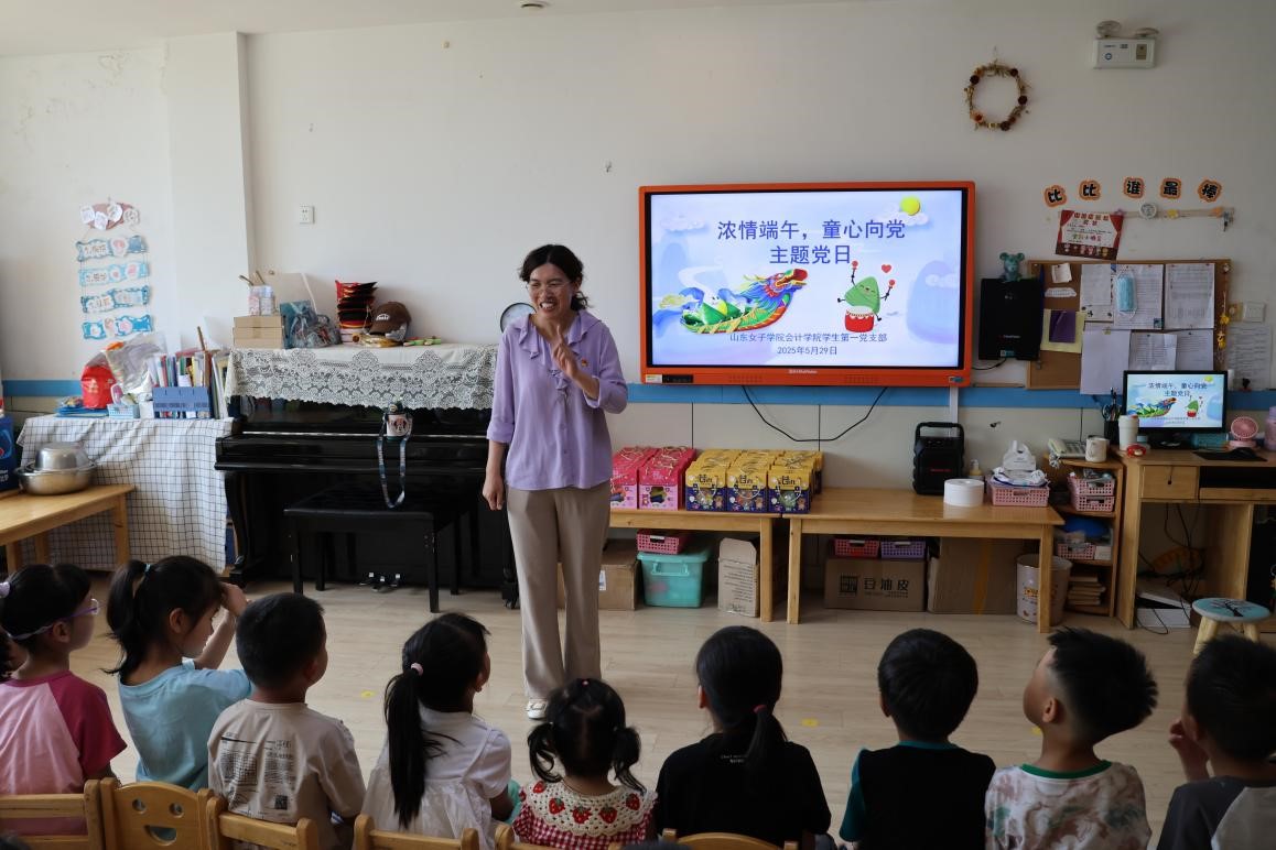 在端午节与国际儿童节来临之际,为传承中华优秀传统文化,传递党组织的关怀与温暖,会计学院党委书记尹衍梅带领学生第一党支部党员走进山东女子学院附属幼儿园,开展“浓情端午 童心向党”主题党日,为孩子们送去欢乐与祝福。