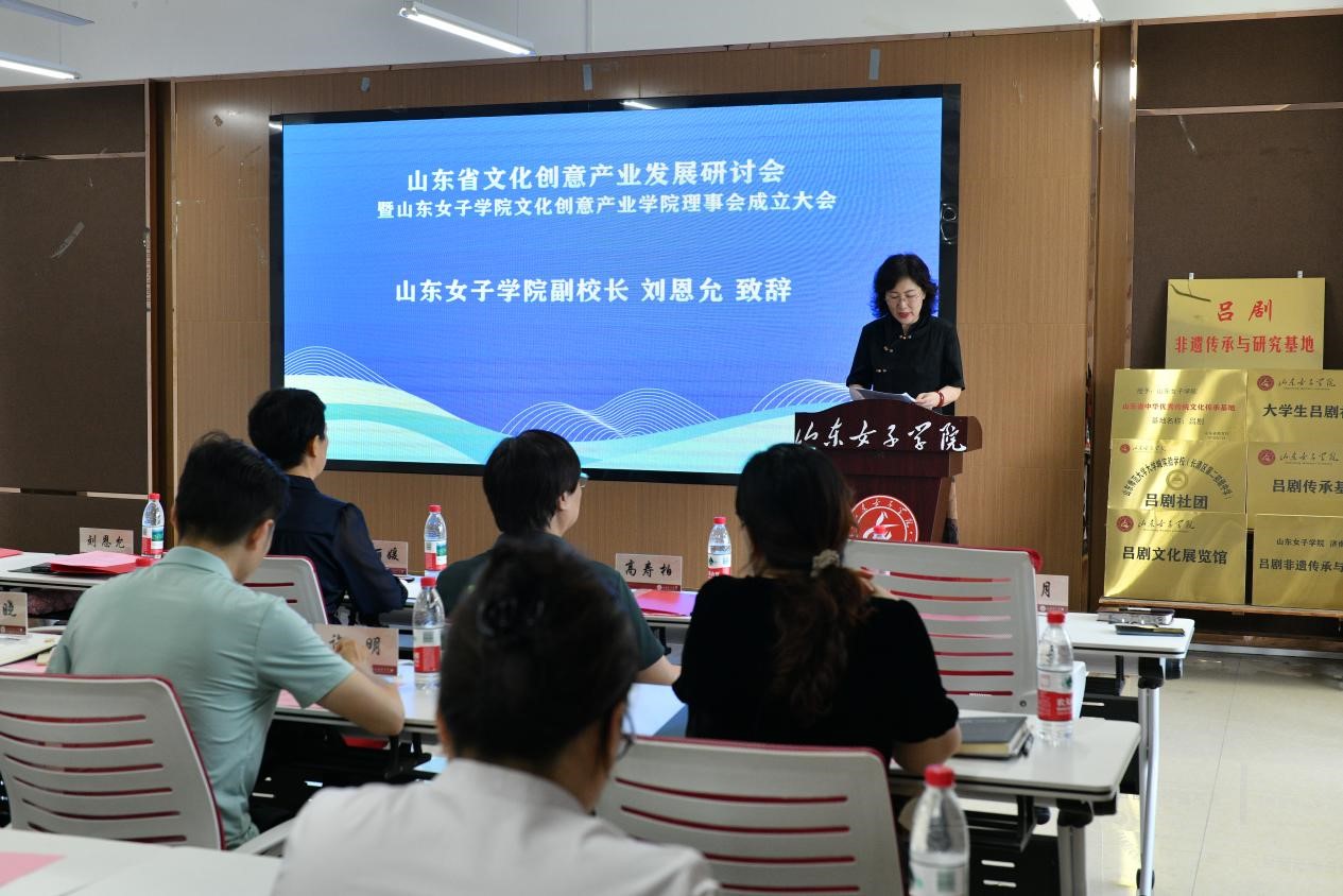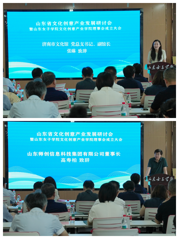 7月11日上午,山东女子学院成功举办“山东省文化创意产业发展研讨会暨山东女子学院文化创意产业学院理事会成立大会”。学校副校长刘恩允,济南市文化馆、泗水县文旅局、乐陵市城投集团等相关单位及企业代表出席。艺术设计学院负责人主持会议。