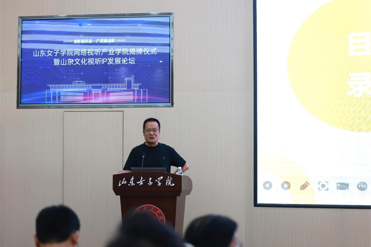 山东省广播电视局网络视听节目管理处处长、一级调研员李广昌致辞时希望学院立足齐鲁文化,打造特色品牌,推动网络视听精品创作与人才培养。大众报业集团经济导报总编辑、齐鲁融媒科技有限公司董事长胡忠华谈到,网络视听是信息传播的主战场,产业学院要成为高素质人才培养的摇篮,为行业输送兼具技术与创意的新生力量。传媒学院主要负责人介绍了产业学院的建设规划,将聚焦老年传播、性别与传媒艺术学科特色方向,组建五大教学科研团队,推动学科专业课程一体化发展。
