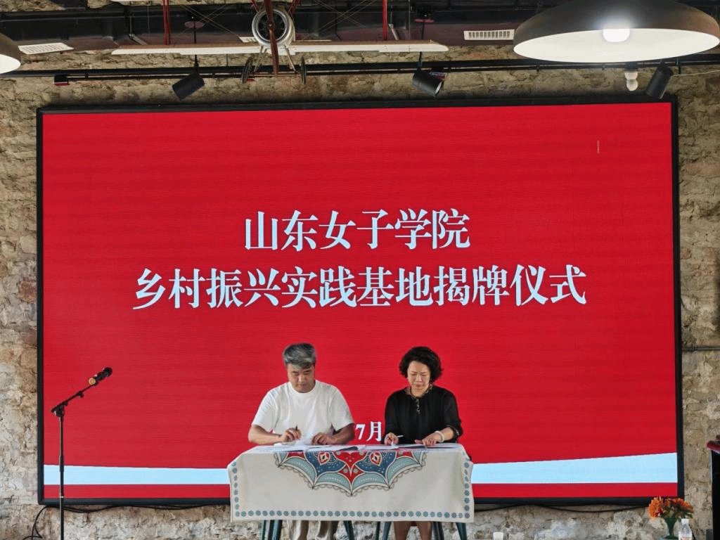 随后,赵月与田彬签约,并与张全庆共同为“山东女子学院乡村振兴实践基地”揭牌。双方围绕乡土人才培养、非遗产业创新、文旅融合发展等领域展开了深入探讨,并达成了诸多合作意向。活动结束后,与会人员现场考察了阅湖尚儒文创街。