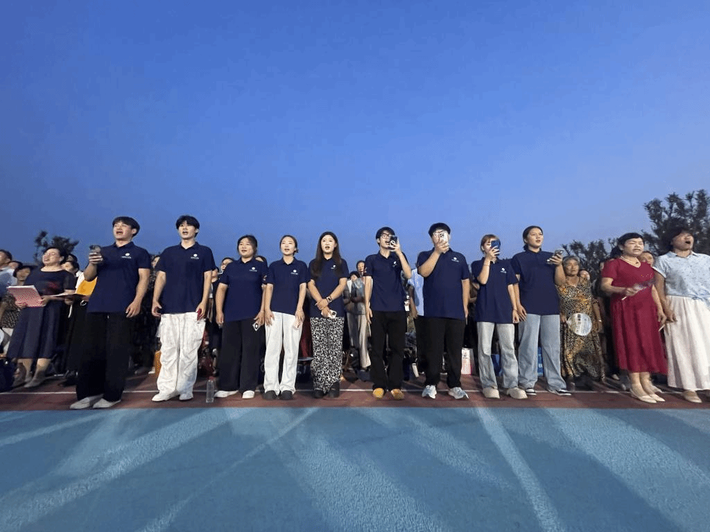 7月18日,服务队的艺术专长在邹平市奥体公园绽放光彩。20名志愿者积极参与当地群众红歌汇演志愿服务工作。他们以专业的文艺表演助力活动开展,完整演绎了《没有共产党就没有新中国》《我和我的祖国》等经典曲目,并通过即兴群舞生动展现红色文化内涵。志愿者们精准对接基层文化需求,将课堂所学转化为惠民实践。其精彩的合唱与集体舞表演,不仅展现了学院艺术人才培养的质量,更点燃了现场气氛,引发了观众自发的全场合唱,歌声响彻奥体公园,成为丰富基层文化生活的动人音符。