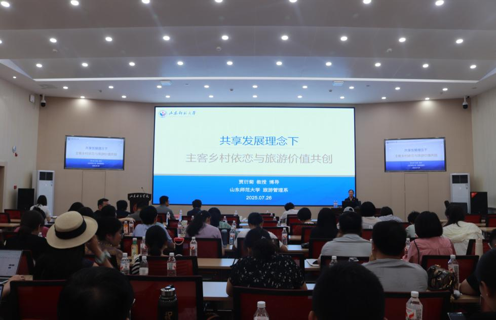 7月26日,旅游学院在求真楼报告厅举办智慧文旅与学科建设交流研讨会,特邀山东大学黄潇婷教授、东华理工大学何小芊教授、山东师范大学贾衍菊教授三位专家作专题报告。旅游学院全体教师参会,共同探讨智慧文旅发展趋势及学科建设相关议题。